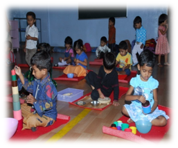 The Montessori approach was designed to help children grow by letting them explore the World around them. Classrooms are called “prepared environments” where children’s innate zeal for learning is encouraged allowing them opportunities to choose among an array of purposeful activities to work on with the guidance of a trained adults. Early child hood is our special concern and we place a great importance in child’s learning environment. Our entrance lobby with colorful displays assures the children as this is a place of fun, interest and teachers will take care of them. We follow Montessori Method where children enjoy their time, feel happy and secured under the table hand of qualified, well trained and compassionate teachers.